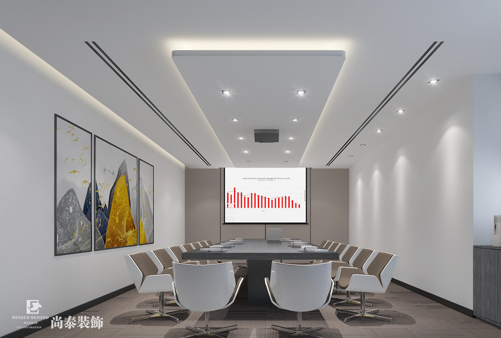 大會議室一般用于中大型會議以及公司的一些活動之類,空間較大,需要根據(jù)不同的需求來進行裝修設計,要體現(xiàn)出會議中的肅穆感,又要能在做活動的是有充滿溫馨歡快的感覺,這很考驗設計師的水平。